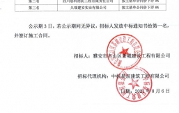 成雅新城人才公寓項(xiàng)目電梯設(shè)備采購(gòu)及安裝招采,根據(jù)工程招標(biāo)投標(biāo)文件的有關(guān)法律、法規(guī)、規(guī)章的規(guī)定,經(jīng)雅安市名山區(qū)茶城建設(shè)工程有限公司競(jìng)爭(zhēng)性談判比選流程,比選工作已經(jīng)結(jié)束,中選人已經(jīng)確定,現(xiàn)將中選結(jié)果公示如下:中選單位名稱:四川通用電梯有限公司中選價(jià):970000元(大寫:人民幣玖拾柒萬(wàn)元整)施工時(shí)間:待甲方通知中選質(zhì)量要求:合格項(xiàng)目現(xiàn)場(chǎng)負(fù)責(zé)人:劉夢(mèng)月自中選結(jié)果公示之日起一個(gè)工作日內(nèi),對(duì)中選結(jié)果無(wú)異議的,采購(gòu)人將簽發(fā)中選通知書(shū),并在五個(gè)工作日內(nèi)簽訂合同。雅安市名山區(qū)茶城建設(shè)工程有限公司2021年7月5日...